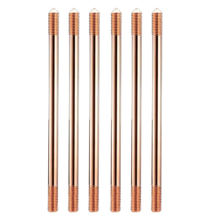 - Cọc tiếp đất mạ đồng được 80% các công trình thi công tiếp địa sử dụng. Cọc có mạ lớp đồng đỏ dày 25 đến 250 micron, cọc không bị rỉ sét, lớp đồng đỏ mạ bên ngoài giúp cọc có tình dẫn điện tốt, cọc đóng không bị uốn cong, với nhiều kích thước khác nhau D14 D16 D18 D20 có chiều dài tiêu chuẩn L=2.4m.