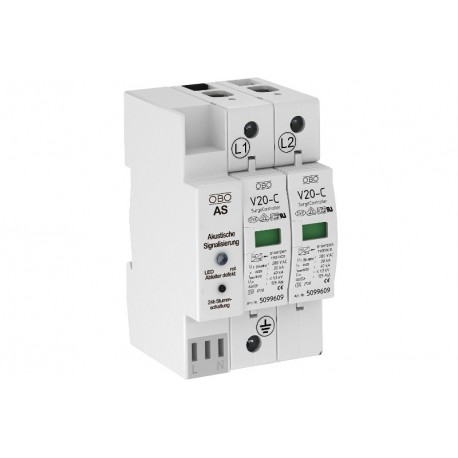 V20C2AS280, 5096 37 5, 5096375, Surge arrestor V20, 280 V for TN networks, 2-pole, with acoustic signalling, chống sét Long Triết